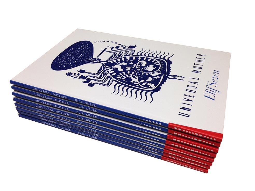 Book Layout and Design, Cover Design & Illustration • GloriaSMH Press • MelbourneElif Sezen is a Turkish-Australian poet. While this may not define her – for me it was a significant detail, with something of an essential eastern soul framing much of her poetic essence. For her book, Universal Mother I struggled with trying to find a language that best described the poetry. What worked finally was a ‘collage’ method – yet starting from a collage of text. Extracts from the poetry presented a host of visual imagery, metaphor and phrase. From this I diagrammatically constructed each specific image like a pictogram or icon. Using an Eastern iconographic method of attributing a multitude of arms to express the range of capacities — the illustration marries the narrative of the title with the many ideas that the poetry expresses — around femininity, love, a connection to the earth and with the cosmos.
